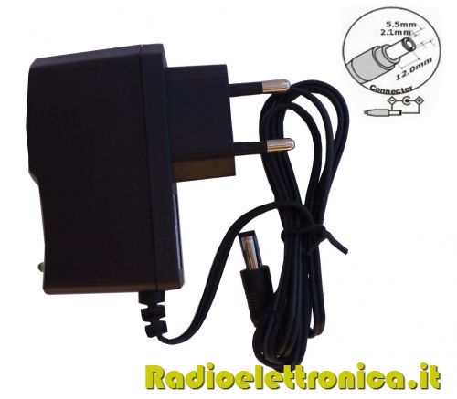 Il dispositivo è dotato di un cavo di 40 centimetri con alla estremità un connettore 2.1/5.5 mm ("+" al centro).