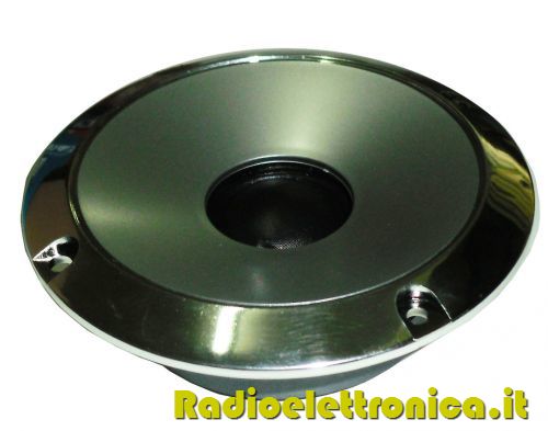 Tweeter 4Ω, 20W magnetico con grande membrana per una potenza dinamica eccezionale anche con basse frequenze di taglio e caratterizzato dal design cromato.