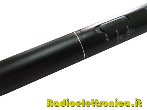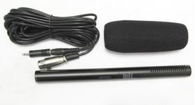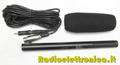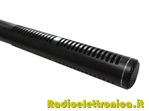 Microfono professionale "mezzo fucile" di costruzione molto leggera, progettato appositamente per l'utilizzo professionale nelle applicazioni video, cinema, televisione. Dotato di un'uscita bilanciata a bassa impedenza funziona tramite una batteria interna da 1.5V.