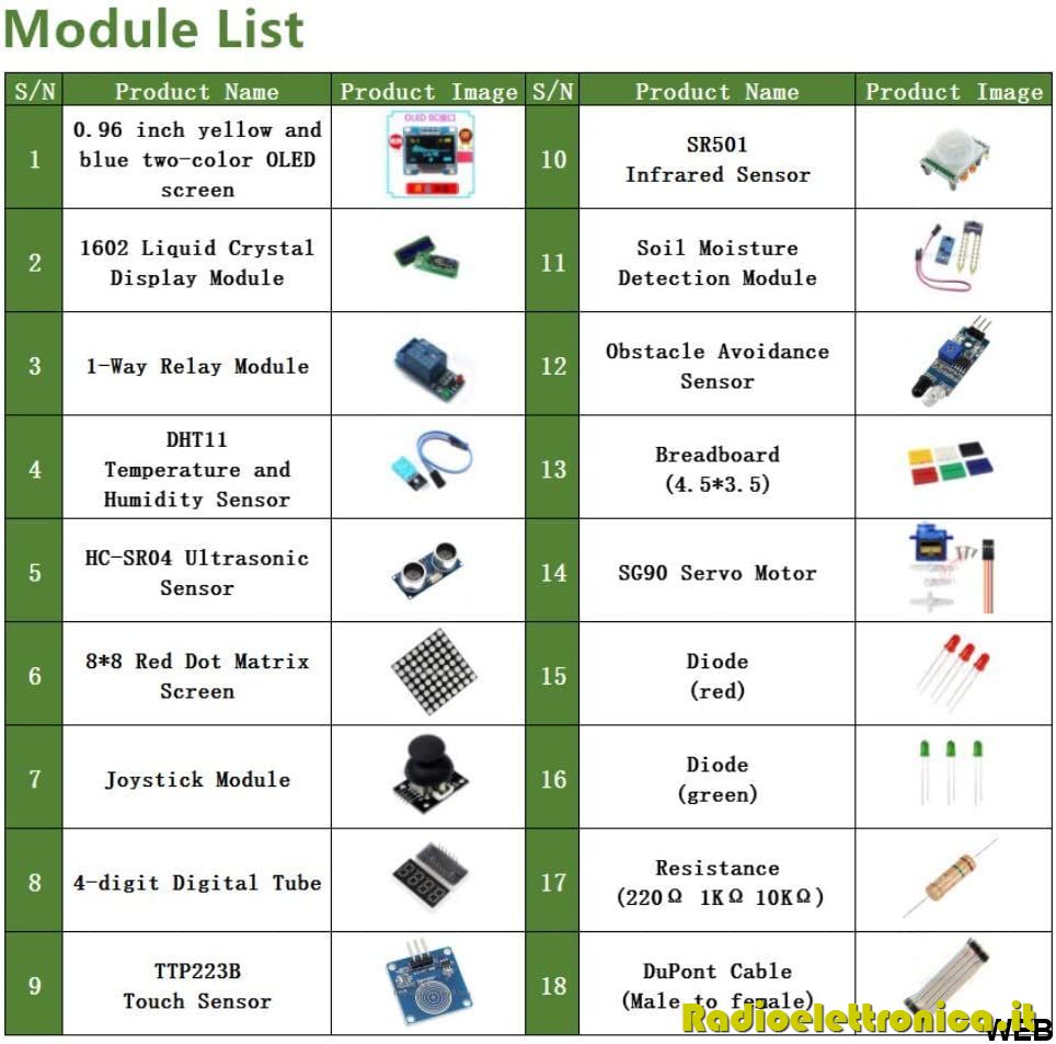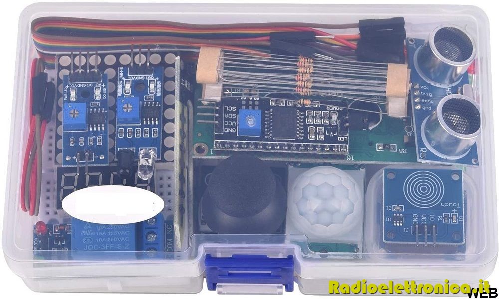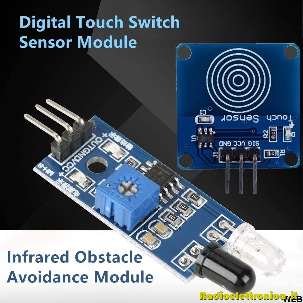 - Modulo JoyStick: modulo bilanciere a 2 assi con potenziometro joystick con uscita analogica a 2 assi (X, Y), uscita digitale a 1 pulsante (Z).