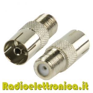 Adattatore F femmina - spina coax 9,5 mm corpo in ottone nichelato