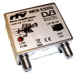 Amplificatore da palo ES2/Q Gli amplificatori ADS.ESQ/2 miscelano e amplificano i segnali provenienti da una o più antenne. Sono dotati di telaio metallico completamente schermato e di connettori di tipoF. Gli stadi preamplificatori sono costituiti da componenti tipo RFIC Amplifier con bassa cifra di rumore e quindi adatti per i segnali digitali terrestri (DVB-T) Alimentazione a 12 V, a una o due uscite, ad amplificazione unica. Corredato di fascetta di fissaggio adatta per pali fino al diametro di 60 mm. Scheda tecnica: 1 Ing. Reg LOG 27 dB OUT 1 VCC 12 V Imax 80 mA N/F 3 dB Level out 115dBµV