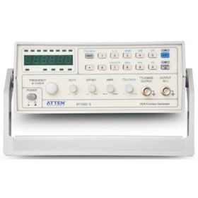 Questa serie usa l'ultima tecnologia diretta di sintesi Digitali (DDS) per generare la frequenza stabile e di alta risoluzione all'uscita. La tecnologia della DDS risolve parecchi problemi incontrati in generatori di funzioni tradizionali come il mutamento di temperatura all'interno del generatore notevolmente interessanti le caratteristiche delle componenti che conducono per produrre il cambiamento di frequenza. I risultati sono precisione e stabilità . AT1645 è l'apparecchiatura ideale degli assistenti tecnici elettronici, laboratori, linee di produzione, scuole e i laboratori di ricerca. High resolution using DDS technology • High frequency accuracy : ±20ppm • Low distortion: <0.6% • High resolution: 100 MHz • Frequency output 5Mhz • TTL/CMOS Output • Digital user interface with 6-digit LED display • Various output waveforms: Sine, Square and Triangle • TTL/CMOS output • Amplitude control • -40dB attenuation • Duty control • Variable DC level control • Output On/Off control • Voltage display • Output Power • Counter