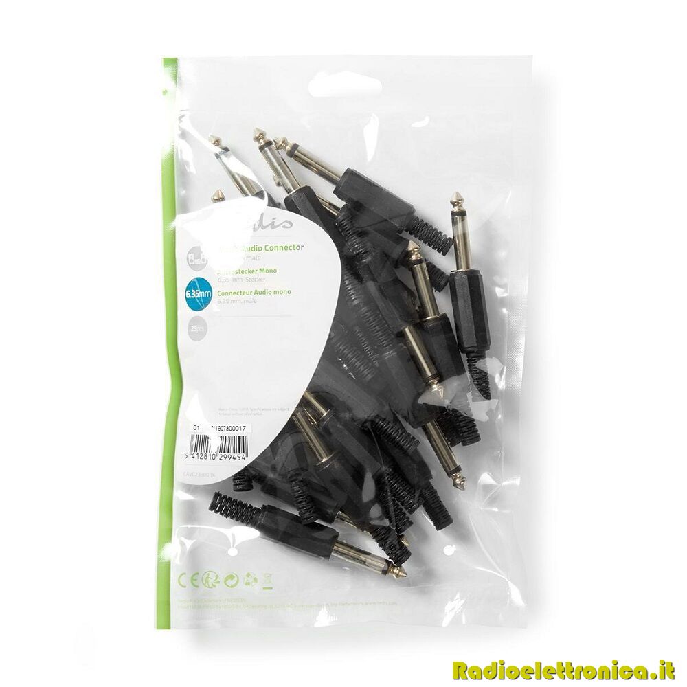 Connettore Jack Mono Maschio da 6,35 mm confezione da 25 pezzi Nero