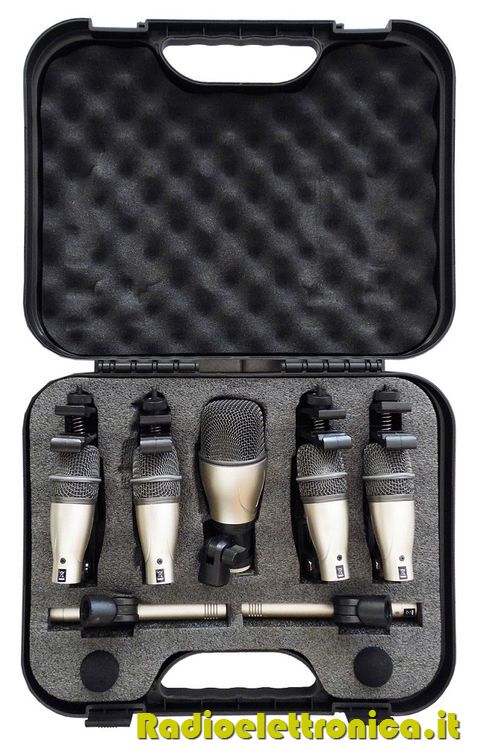 Il set di microfoni è composto da un microfono a tamburo Q71, quattro microfoni Q72 e due microfoni a condensatore C02.