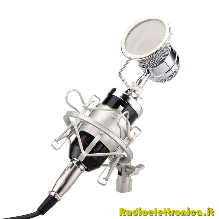 Microfono a condensatore unidirezionale + filtro antipop + shock mount ideale per uno studio di registrazione