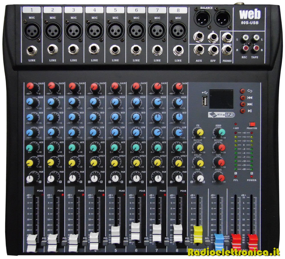 • 8 ingressi microfono con alimentazione phantom +48 volt