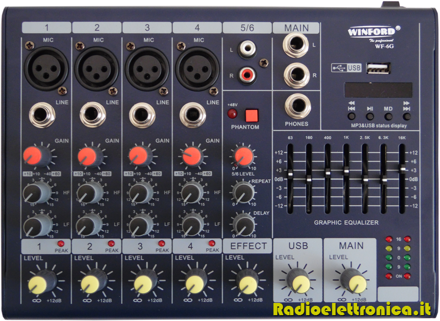 Mixer ultra slim a 6 canali con USB WF-6G
