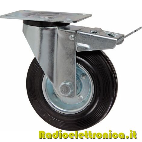 Ruota in gomma girevole con freno 70 mm con piastra 94x64 mm