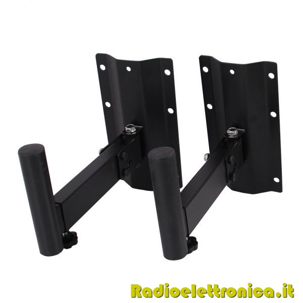 Robusto supporto in acciaio tubolare a parete, orientabile orizzontalmente e con possibilità di regolare l'inclinazione.