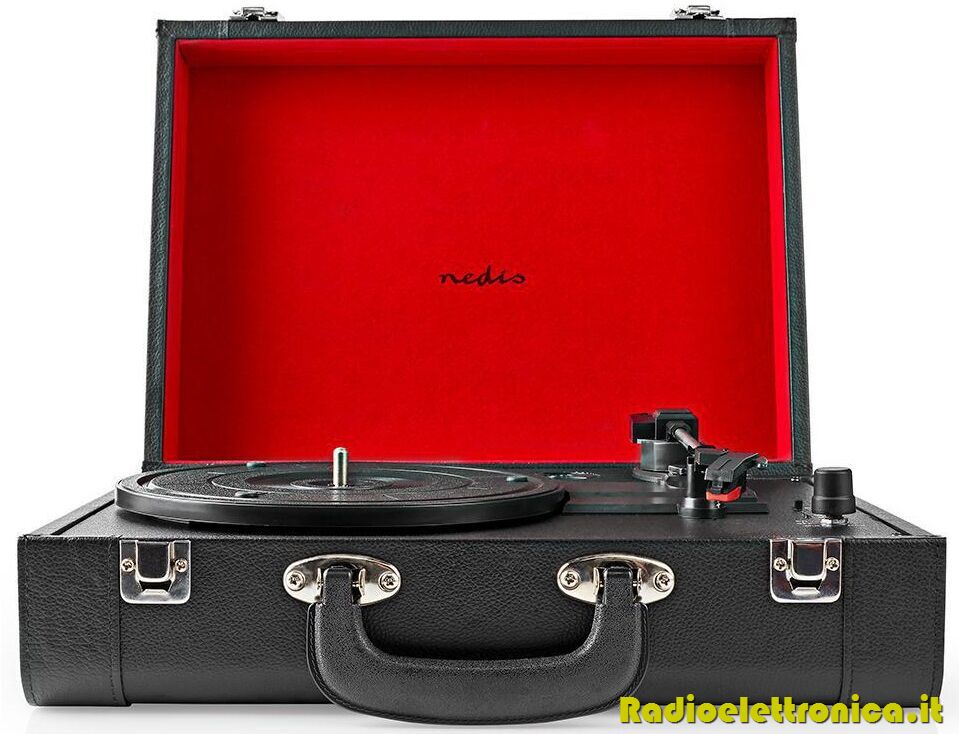 • Valigia portatile con maniglia per il trasporto per ascoltare i tuoi album ovunque