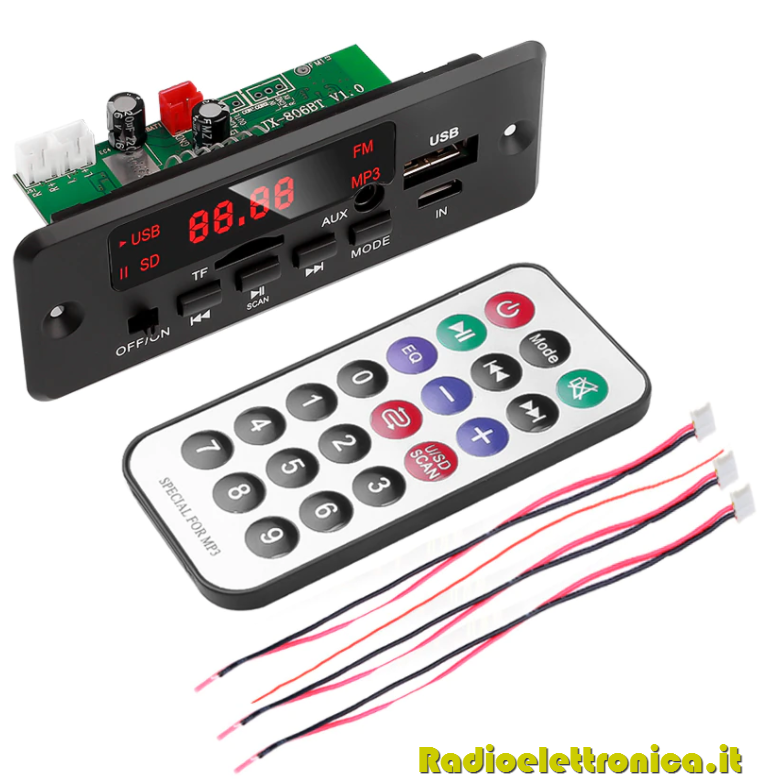 Kit auto multifunzione 12V 2x25W JX-806BT FM USB Micro-USB SD Bluetooth 5.0 AUX con telecomando