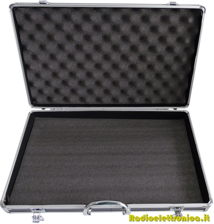 Studiata per il trasporto di microfoni e cavi di collegamento, corpo in acciacio resistente con angoli rinforzati. Fornita di piedini per poterla poggiare in verticale.