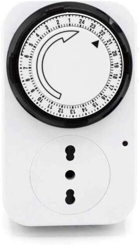 Qualsiasi elettrodomestico può essere connesso tranquillamente al TIMER. In più, grazie a delle levette che circondano l'orologio, si può fare in modo che l'accensione e lo spegnimento avvengano svariate volte in una sola giornata. Una volta impostato, l’orario resta in automatico fino ad eventuale cambiamento manuale.