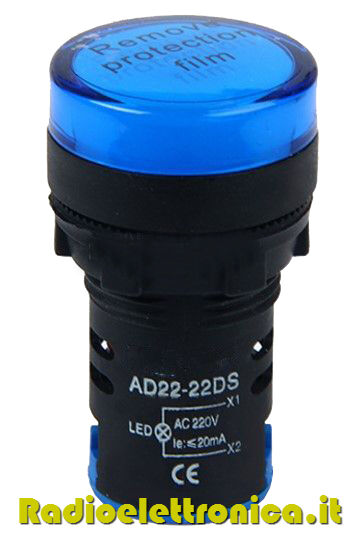 Indicatore luminioso da pannello 220V - blu