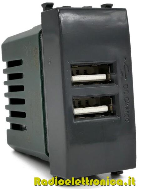 Alimentatore doppia presa USB 5V 2A nero compatibile Vimar