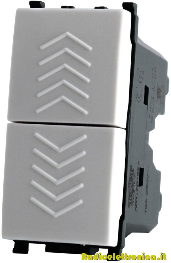 Moderno e funzionale interruttore a doppio pulsante usato in impianti elettrici civili e professionali, modulo di comando per persiane e molto altro.