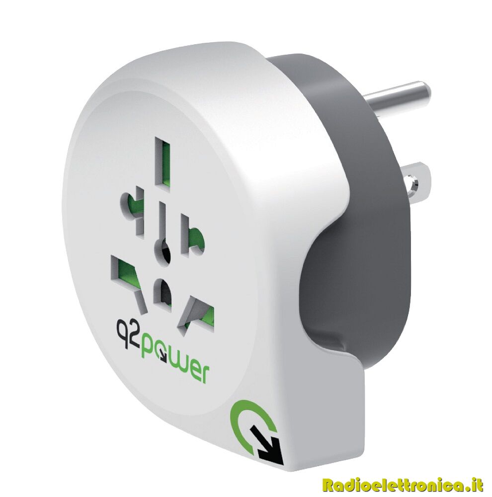 The World to USA di Q2Power è un adattatore da viaggio con messa a terra. I viaggiatori di tutto il mondo possono alimentare in sicurezza tutti i loro dispositivi a 2 e 3 poli, sia negli Stati Uniti d'America che in qualsiasi altro paese con lo standard USA.