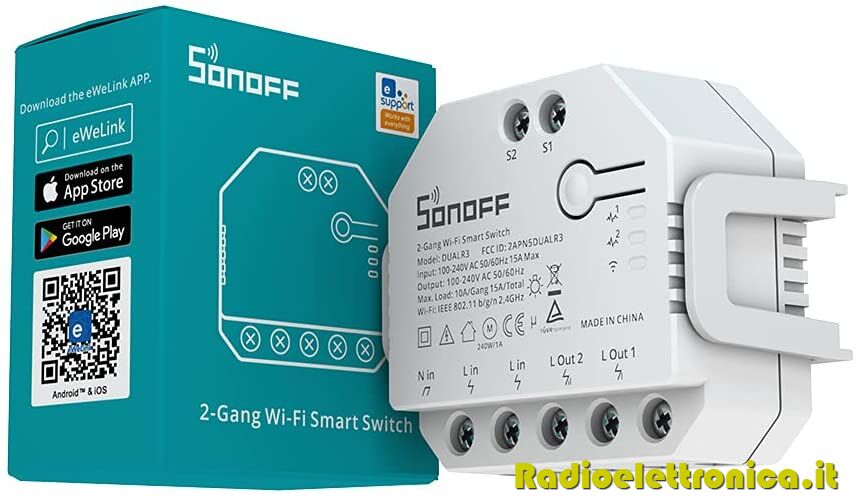 Sonoff Dual R3 è uno switch 2 contatti basato su WiFi che può collegare e controllare in modo indipendente due apparecchi o luci collegate. Ciò significa semplicemente che 1 interruttore di controllo Sonoff Dual equivale a 2 interruttori Sonoff Basic!