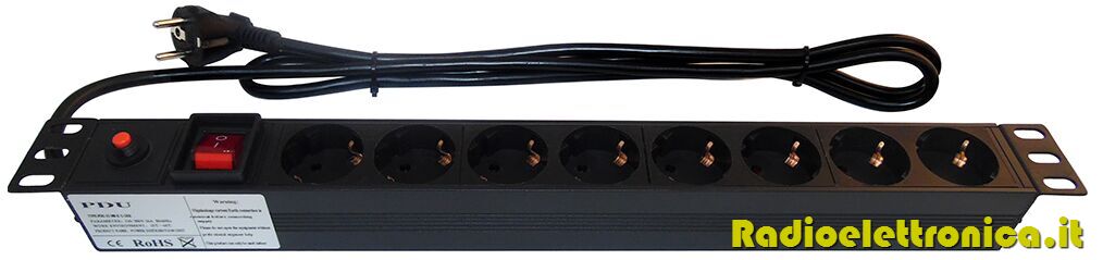 Multipresa 8 posti SHUKO per armadio rack 19" con interruttore luminoso