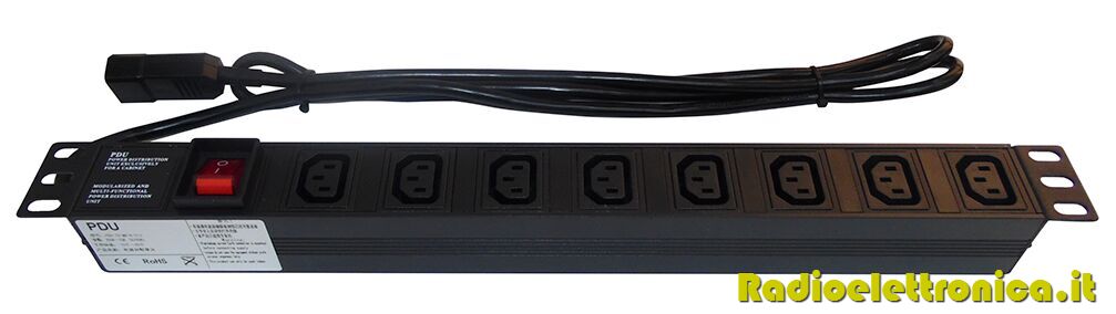 Multipresa 8 posti VDE C13 per armadio rack 19" con interruttore luminoso