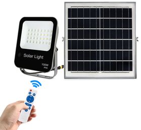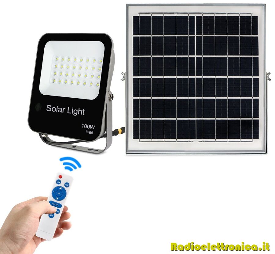 Faro LED con pannello ad energia solare dimmerabile con timer e telecomando 100W 6500K IP65