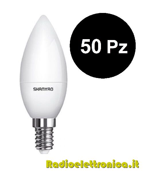 50 Pezzi - Lampada LED C37 5W attacco E14 candela - luce calda - SERIE LUNA