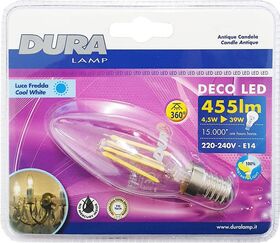 Antique candela LED 39W E14 luce fredda 455 lumen Duralamp