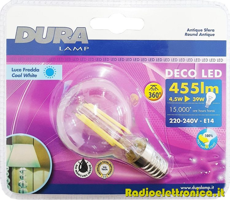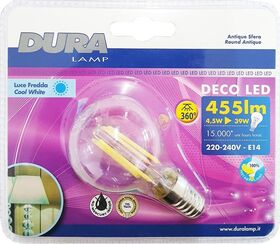 Lampadina Antique sfera LED 4.5W E14 luce fredda 455 lumen Duralamp