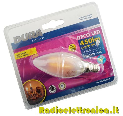 Lampadina Candela LED 4.5W E14 luce calda 450 lumen Duralamp