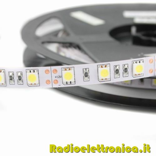Striscia flessibile LED SMD 5050 da 5 metri tagliabile ogni 5cm = 3led con siliconatura ottima per uso interno/esterno o nei profili in alluminio.