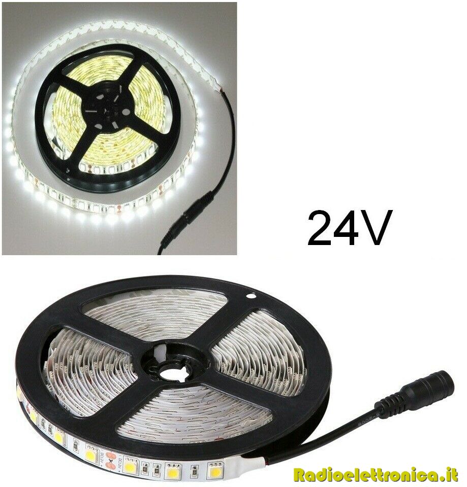 Striscia LED flessibile SMD 5050 24V IP65 14.8W/m 5m luce bianca fredda