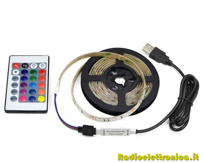 Striscia LED RGB 5m IP65 cavo di alimentazione USB con telecomando