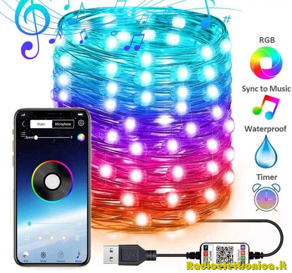 Striscia LED bluetooth RGB alimentazione tramite USB 10m IP65 Meiq-it
