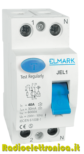 Interruttore differenziale a 2 poli JEL1 AC 2P 63A/30mA Elmark