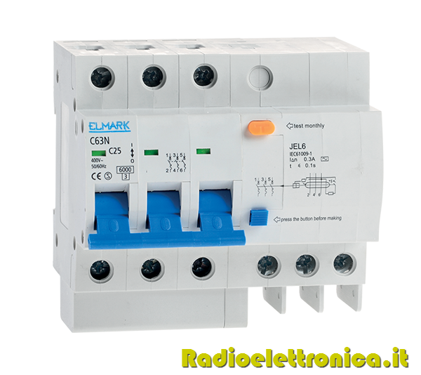 Interruttore differenziale con controllo elettronico di corrente residua JEL6 C40 3P 40A/30MA Elmark