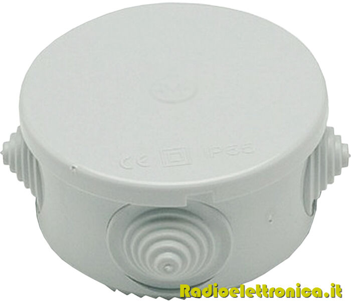 Scatola di derivazione tonda da esterno con fori passacavi