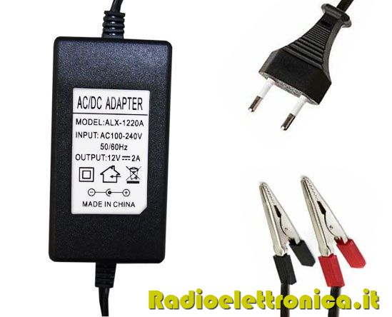 - Dotato di morsetti a coccodrillo per il collegamento della batteria