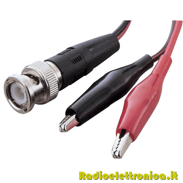Cavetto per strumentazione composto da 1 connettore BNC maschio, 2 pinze a coccodrillo. Lunghezza cavo 140 cm.