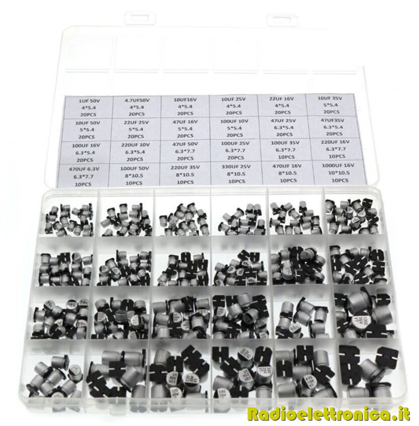 Questo set include 24 tipi più popolari di condensatori che potrebbero soddisfare le tue esigenze di base.