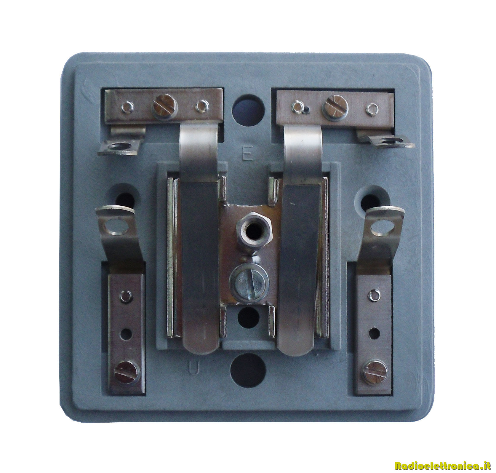 Scatola portafusibili con sistema di protezione da scariche elettriche per linee telefoniche.