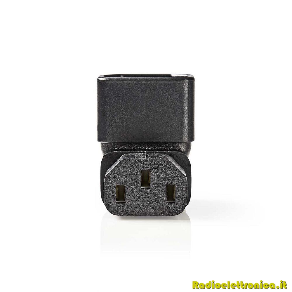 Adattatore di alimentazione angolare da IEC-320-C14 a IEC-320-C13 con angolo di 90 gradi.