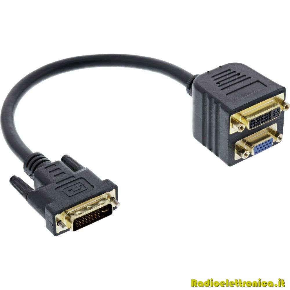 Cavo adattatore sdoppiatore da DVI-I 24+5 pin a DVI-I 24+5 pin e VGA