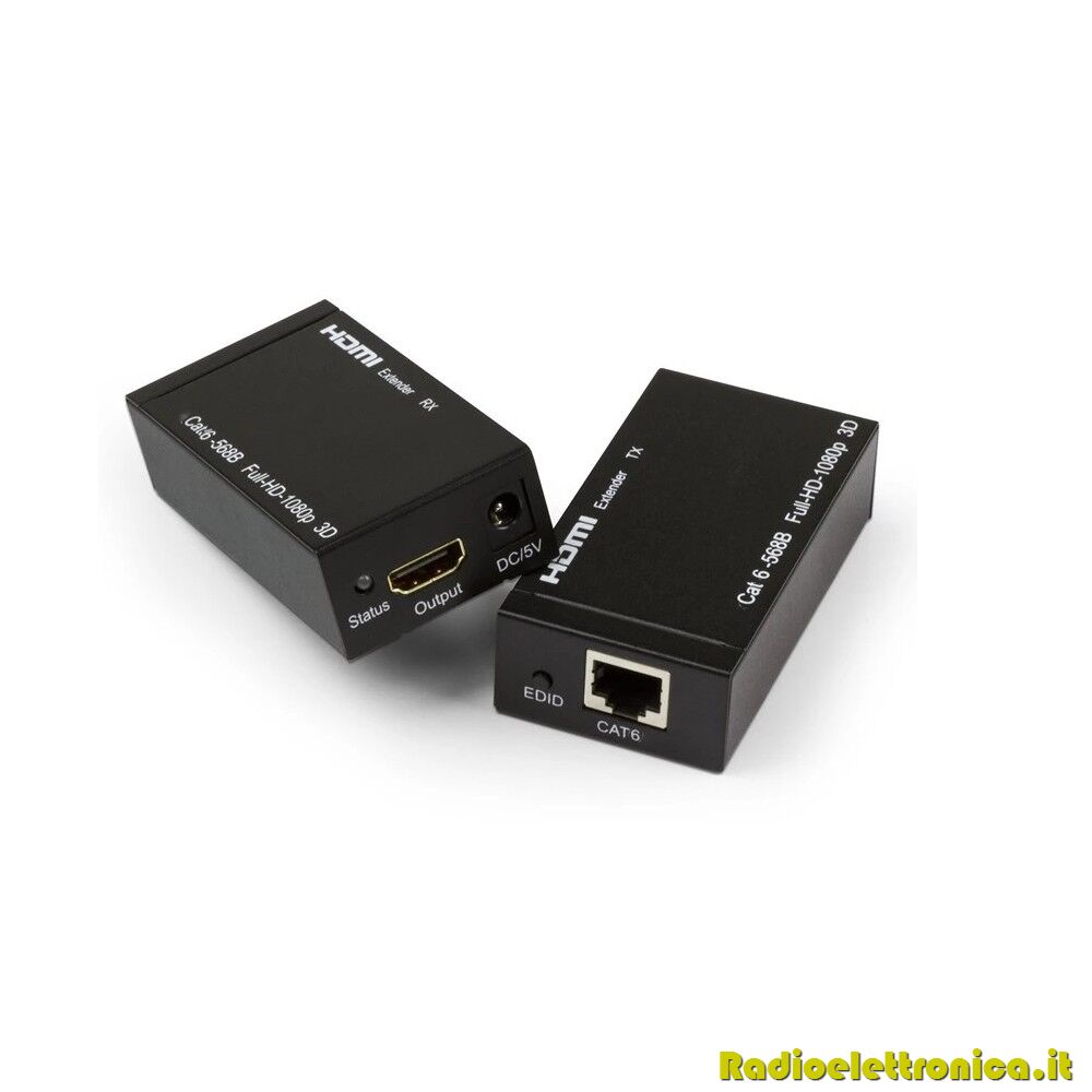 HDMI EXTENDER ETHERNET CAVO DI RETE LAN OVER CAT6 60 METRI HDMI 3D FULLHD 1080P