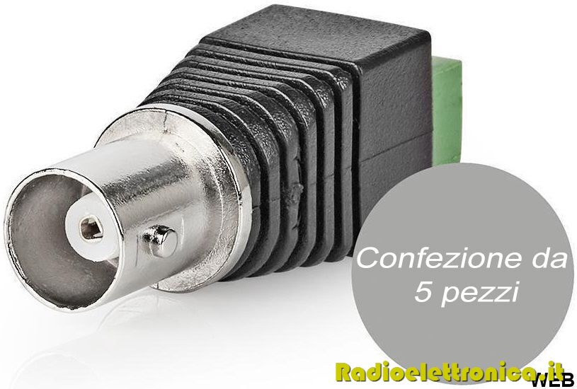 Connettore di sicurezza CCTV 2 fili a BNC femmina confezione da 5