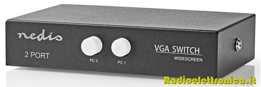 Questo switch VGA a due porte può essere usato per alternare tra due schermi collegati a un solo PC o tra due PC collegati a un solo schermo.