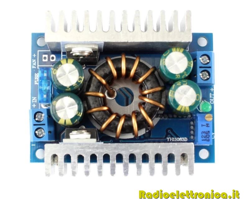 • cablaggio: Morsetti, non hanno bisogno di saldare. V-IN ingresso, uscita V-OUT.