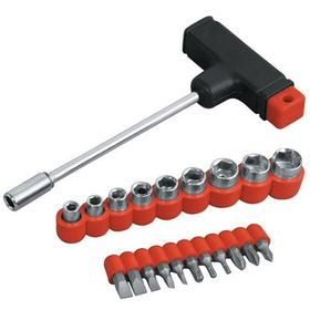 Cacciavite con comoda impugnatura a "T" con 10 inserti intercambiabili e foro per appenderlo. Ideale per auto, casa, fai da te, bricolage, piccoli lavori di manutenzione, sempre utile. CONTENUTO DELLA CONFEZIONE - impugnatura a T - 4 inserti a taglio (4-5-6-7 mm) - 3 inserti a stella (1-2-3 mm) - 3 inserti a croce (1-2-3 mm) - 1 adattatore per inserti a brugola - 9 bussole esagonali (4-5-6-7-8-9-10-11-13 mm