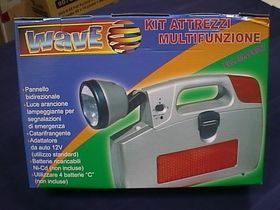 Torcia di emergenza con kit attrezzi e lampeggiante per auto Ideale per riparazioni in auto, utile compagno di viaggio,utilizzabile con adattatore accendino.
