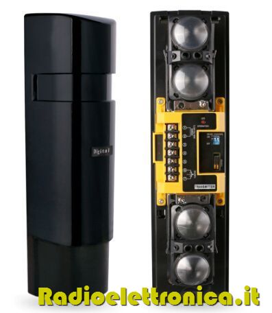 Barriera fotoelettrica a infrarossi a quattro fasci con portata massima di 100 metri. Dispone di un LED che indica l'allineamento dei fasci, interruttore antimanomissione, controllo automatico del guadagno in qualsiasi condizione ambientale (pioggia, nebbia, neve, ecc), regolazione asse ottico orizzontale/verticale. Protezione da falsi allarmi provocati dalle luci delle auto, disturbi elettrici e comuni interferenze. L'utilizzo di quattro fasci consente di ridurre notevolmente il problema dei falsi allarmi; il dispositivo, infatti, genera il segnale di allarme solamente se i quattro fasci vengono interrotti contemporaneamente (AND).